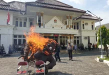 Aksi Bakar Ogoh-Ogoh di KPU DIY sebagai Protes Terhadap Isu Kecurangan