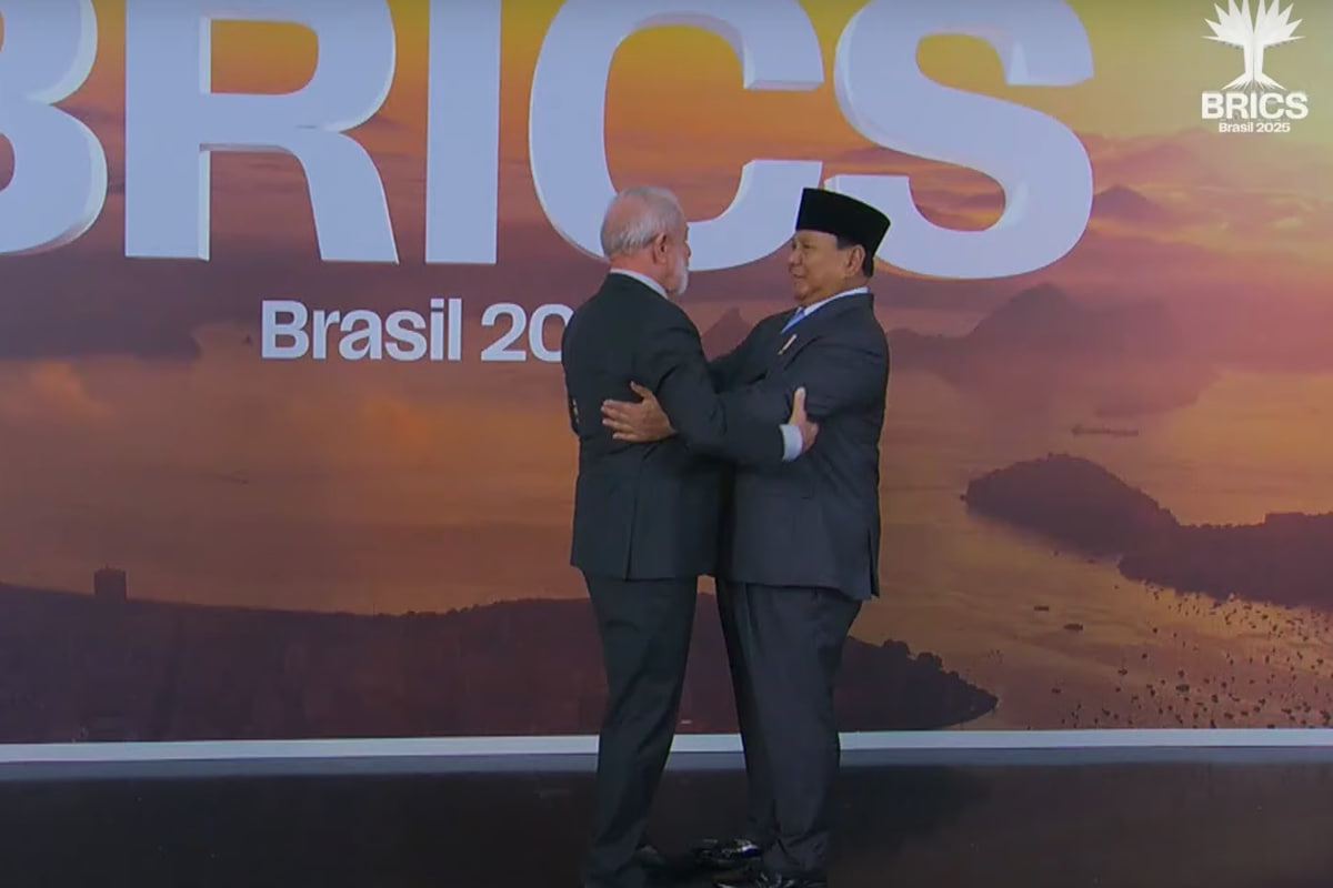 Prabowo dan Lula kemudian berfoto bersama dengan latar belakang tulisan “BRICS Brazil 2025”, menandai partisipasi pertama Indonesia sebagai anggota penuh BRICS sejak 1 Januari 2025. KTT kali ini mengusung tema “Strengthening Global South Cooperation to a More Inclusive and Sustainable Governance” yang menekankan kerja sama negara-negara di belahan bumi selatan untuk tata kelola global yang lebih inklusif dan berkelanjutan.