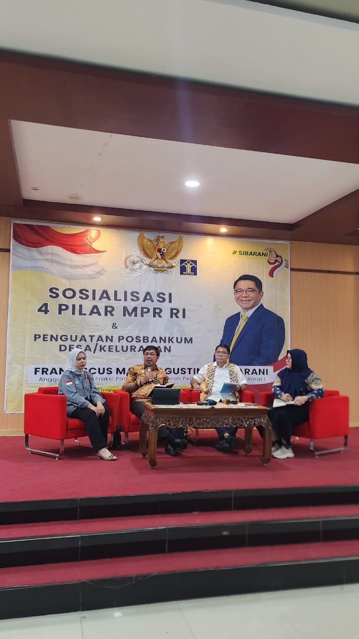 SAMBAS – Anggota MPR RI dari Fraksi Partai Golkar daerah pemilihan Kalimantan Barat I, Franciscus Sibarani, menggelar sosialisasi 4 Pilar Kebangsaan kepada para kepala desa, Perangkat Desa, paralegal, serta mahasiswa di Kabupaten Sambas. Acara ini digelar dalam 2 sesi, yaitu tanggal 9 dan 10 Februari di Gedung Terpadu 1 Politeknik Negeri Sambas.